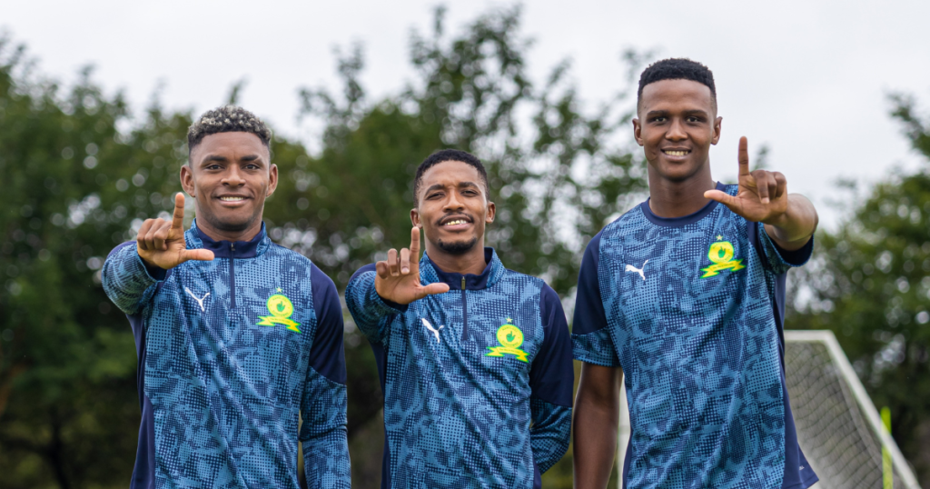 Mamelodi Sundowns new signings Brayan Lèon, Monnapule Saleng and Khulumani Ndamane (Image: X/@Masandawana)